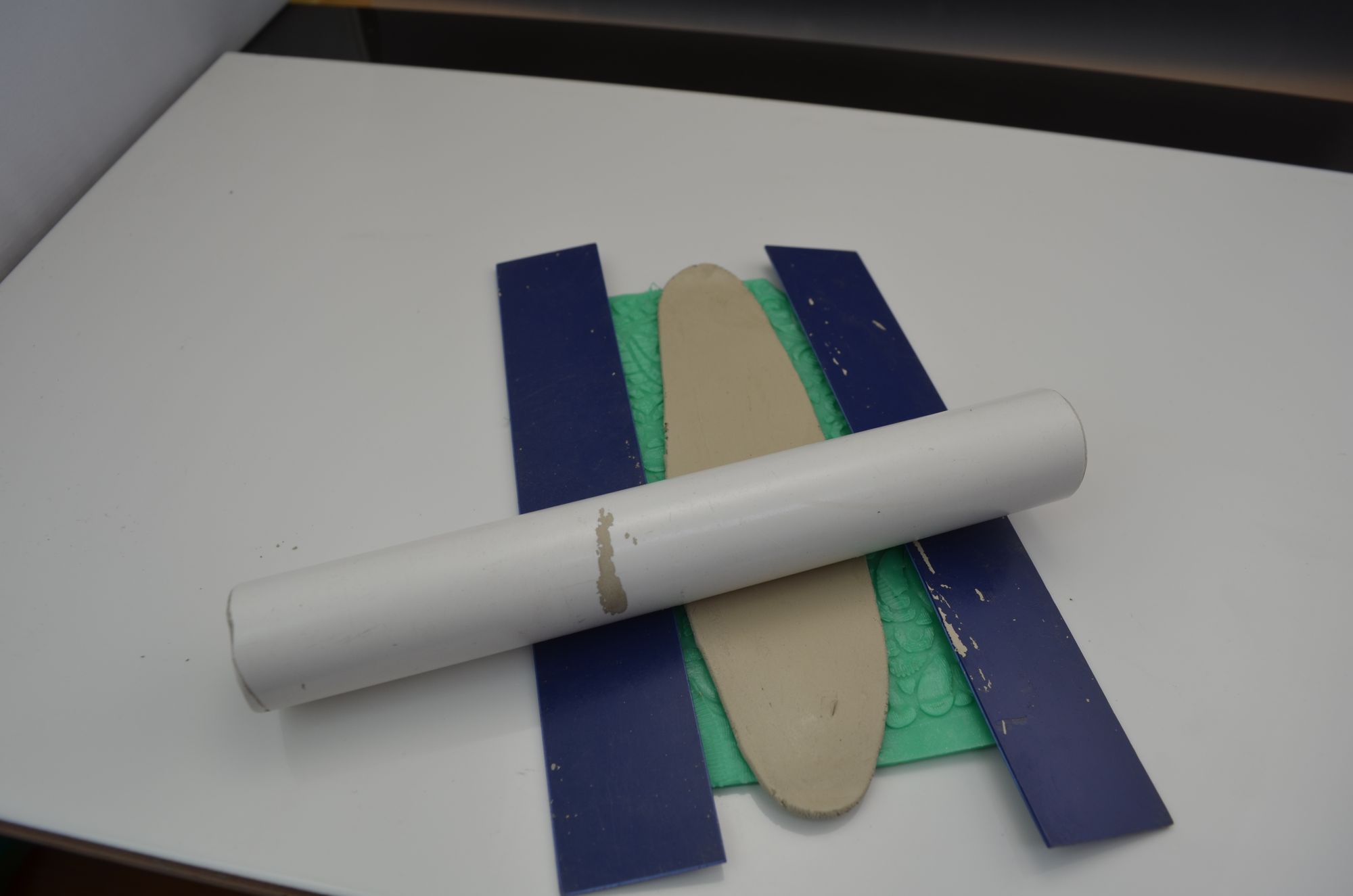 - Oil or Badger balm your work surface. Roll out the clay using 1.5mm spacer bars. Place the clay on top of your chosen texture and roll once again using 1mm spacer bars.